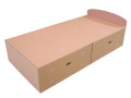 できるだけシンプルに仕上げた、普段使いの強化段ボール製のシングルベットです。避難所用の一時使用でなく、日常的に長く使いたい、というお客さまの要望で開発し生まれた商品です。